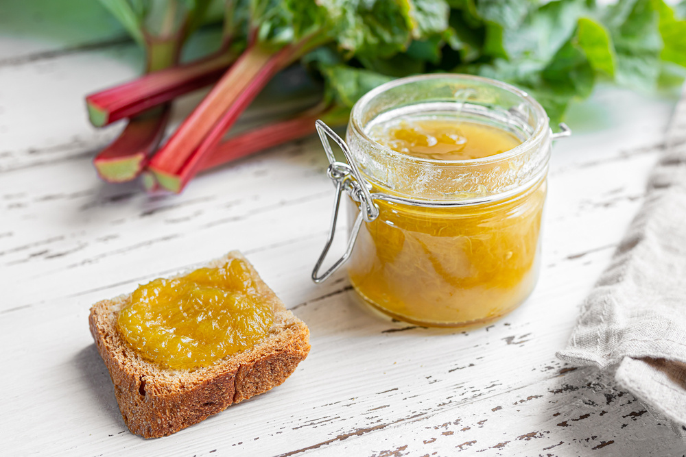 Rabarber (EU)(62%), zoetstof: maltitol, geleermiddel: pectine, citroensap,